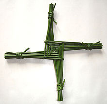 A Saint Brigid's cross, which honors Saint Brigid of Ireland, is made from interwoven pieces of straw, reeds, or rushes which are the traditional material. These simple, homemade crosses are traditionally hung over the door or in the rafters of the home to protect the dwelling from harm. Saint Brigid's crosses are quite easy to make by hand and require just a few supplies.